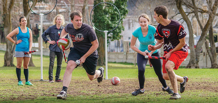 U students now field not one but two teams for quidditch, the part rugby, part basketball, all magical sport inspired by the Harry Potter books. Though they are “muggles” (nonmagical folk, in the Pottersphere), the full-contact sport’s co-ed teams play while straddling makeshift “brooms” (typically, decorated PVC pipes) just as its fictional flying players do. And despite the sport’s origins, the players often take the real-world game quite seriously. The U’s Crimson Elite and Crimson Fliers usually practice at Reservoir Park, just west of campus, and any U student is welcome to come try the game before committing to joining the team. Visit “Utah Quidditch” on Facebook to learn more.