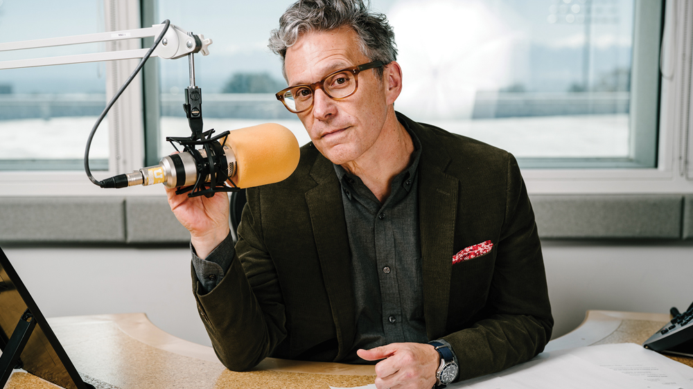 Up on the eastern edge of the University of Utah campus, it is 5 a.m., and the Eccles Broadcast Center is subdued and dark. The soothing British voices of the BBC World News are quietly wrapping up, and NPR’s Morning Edition is about to launch into its jaunty theme song. In this interstitial moment, from his corner office, Doug Fabrizio BA’88 pauses to look up from the book he is reading to regard the twinkling lights in the valley below and jot down a question.