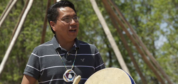 As Kanip played his drum and sang and spoke on that hot summer day, he agreed that there could be a little more education around campus about what a Ute is or what the logo means. Standing close to Kanip’s own round drum, you can feel its vibrations as he plays. As he sings, you sense the deep respect Kanip has for the meaning and place that songs hold among not just Utes but all Native Americans.